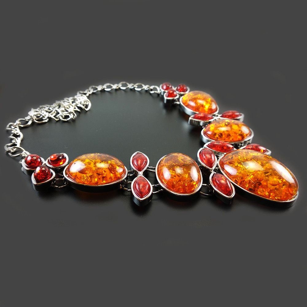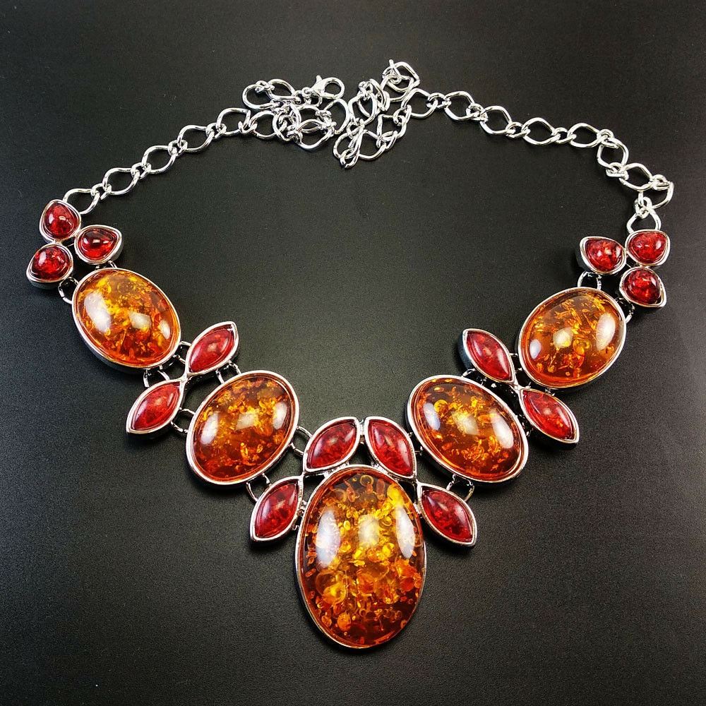 BALTIC AMBER GEMSTONE SILVER PLATED HANDMADE NECKLACE , Gemstone : Baltic Amber , Necklace Size : 18 Inches (With adjustable links) , Necklace Weight : 75.500 Gram