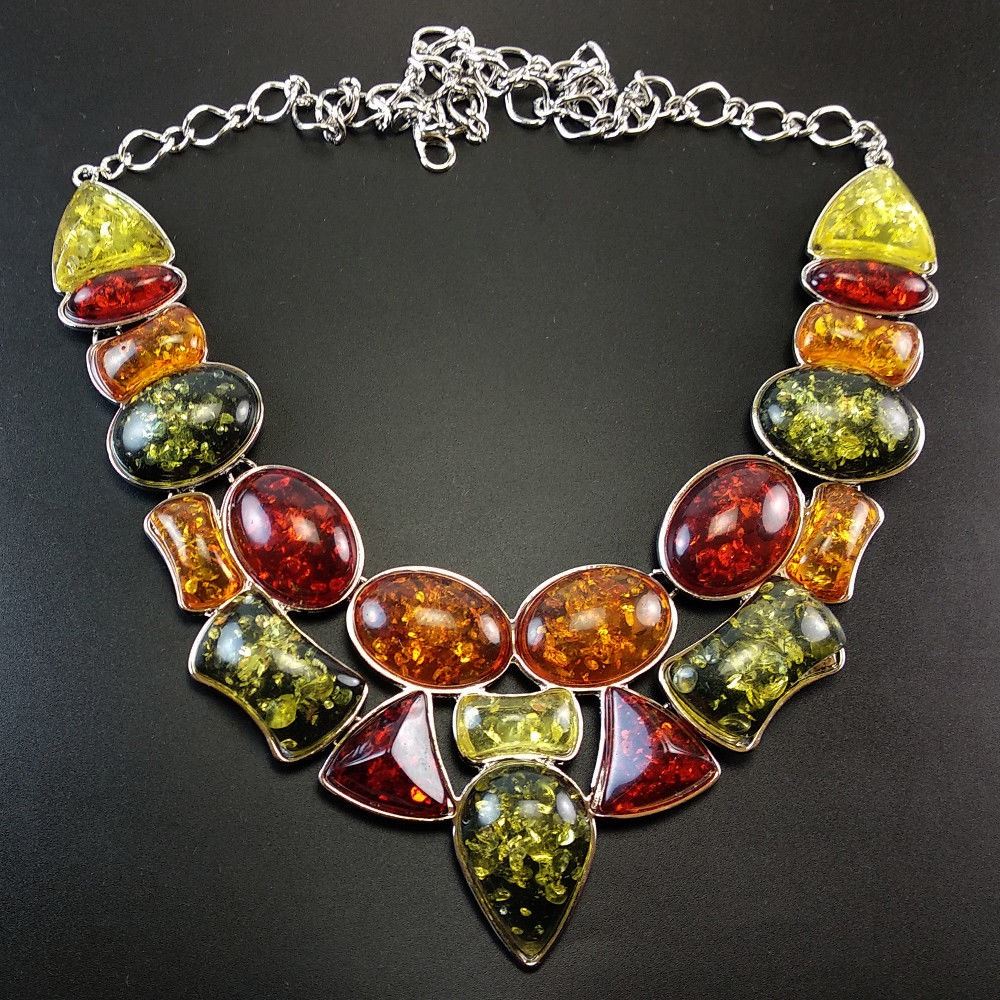 BALTIC AMBER GEMSTONE SILVER PLATED HANDMADE NECKLACE , Gemstone : Baltic Amber , Necklace Size : 18 Inches (With adjustable links) , Necklace Weight : 75.600 Gram
