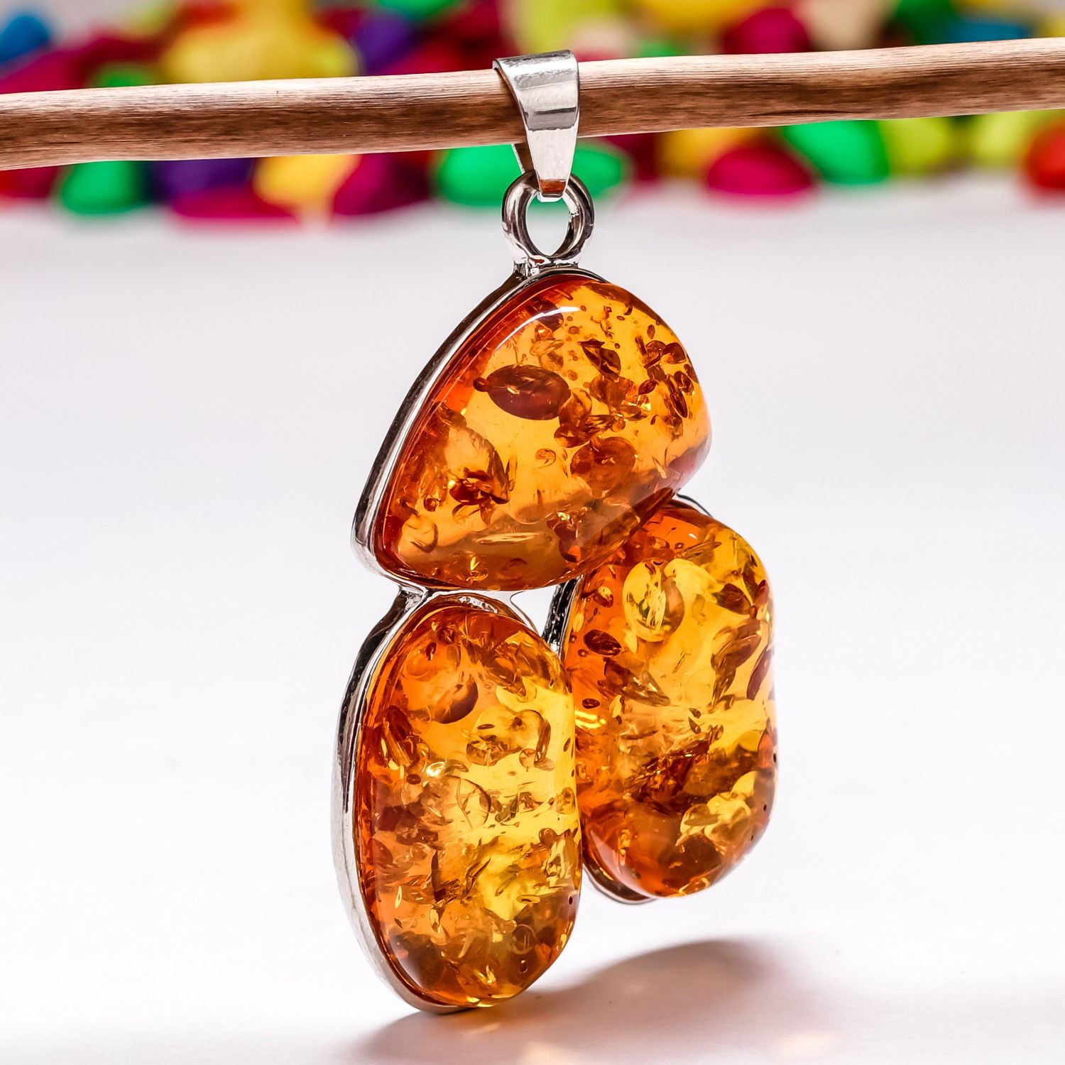 BALTIC AMBER GEMSTONE SILVER PLATED PENDANT JEWELRY , Gemstone : Baltic Amber , Pendant Size : 2.5 Inches , Pendant Weight : 20.500 Gram