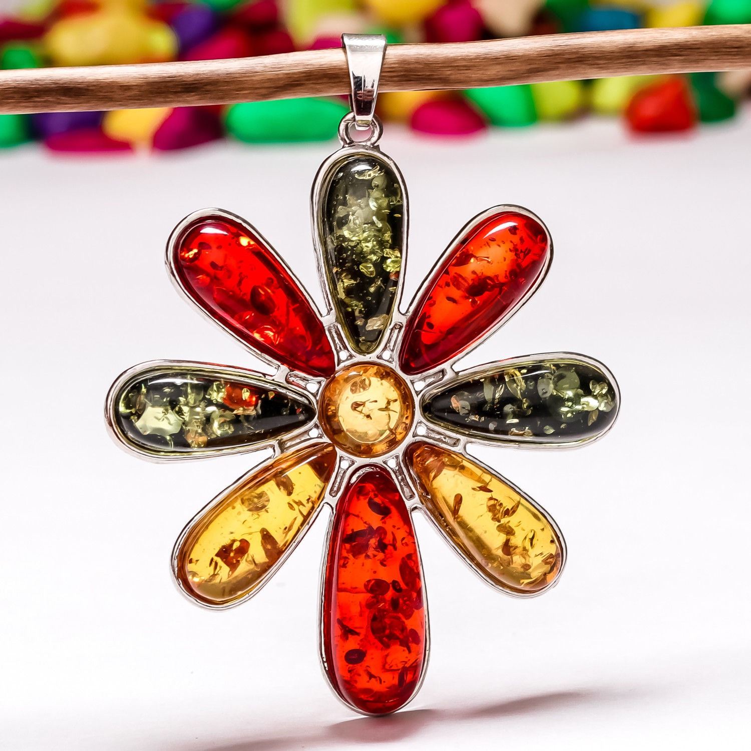 BALTIC AMBER GEMSTONE SILVER PLATED PENDANT JEWELRY , Gemstone : Baltic Amber , Pendant Size : 3 Inches , Pendant Weight : 25.700 Gram