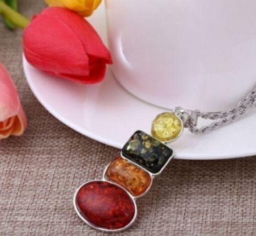 BALTIC AMBER GEMSTONE SILVER PLATED PENDANT JEWELRY , Gemstone : Baltic Amber , Pendant Size : 2 Inches , Pendant Weight : 8.700 Gram