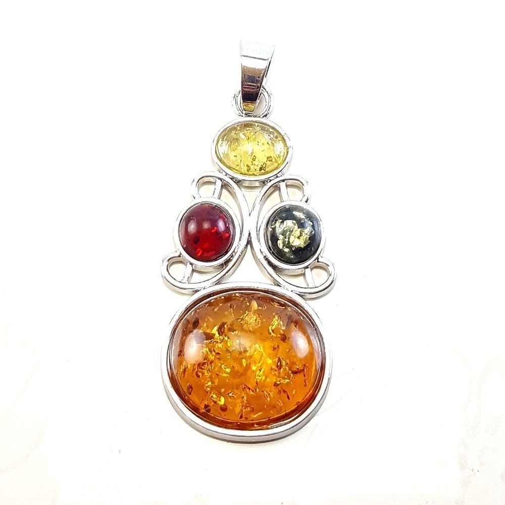 BALTIC AMBER GEMSTONE SILVER PLATED PENDANT JEWELRY , Gemstone : Baltic Amber , Pendant Size : 2 Inches , Pendant Weight : 8.400 Gram