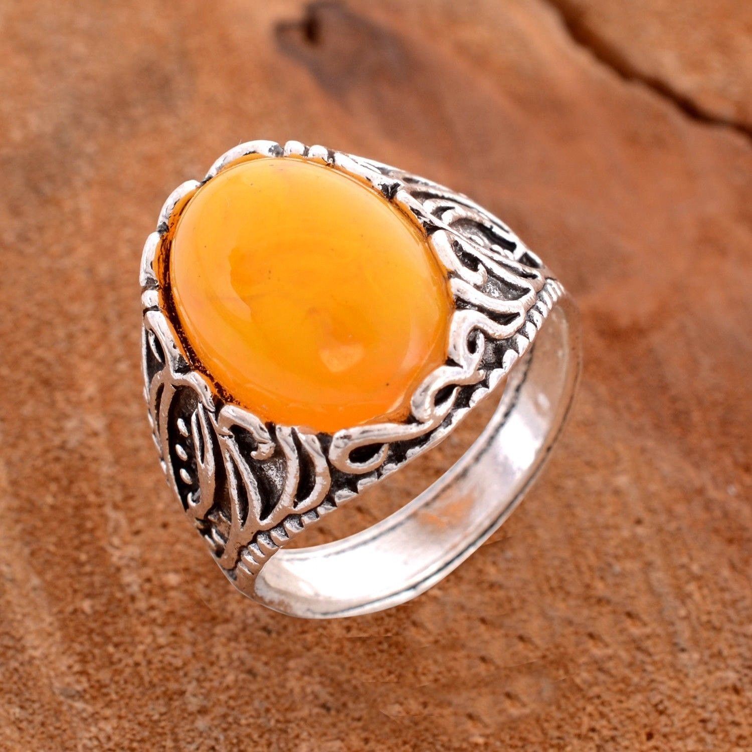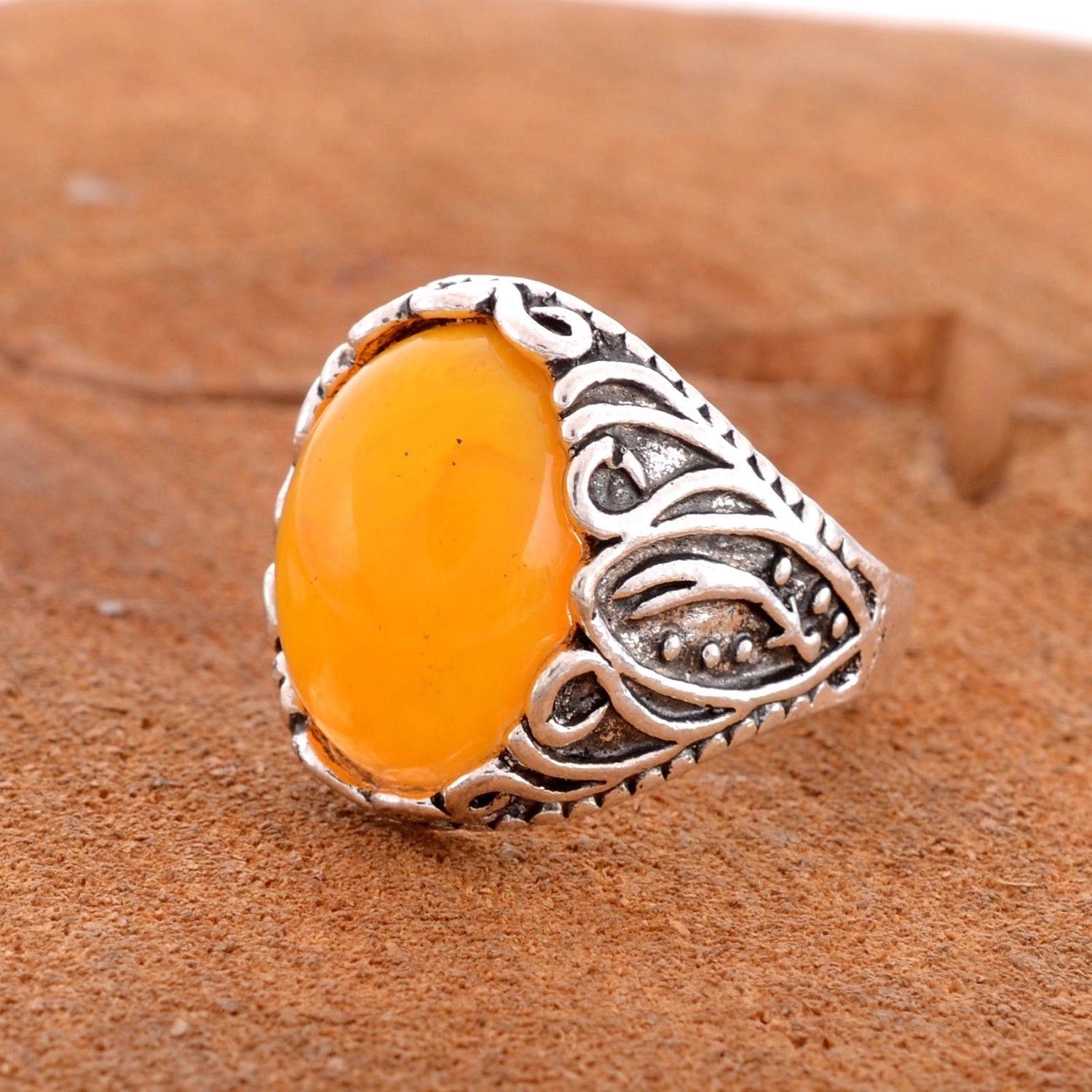 BALTIC AMBER GEMSTONE SILVER PLATED RING SIZE 7 , GEMSTONE - BALTIC AMBER , GEMSTONE COLOR - YELLOW , STONE SHAPE - OVAL , MAIN STONE SIZE - 17X12 MM , QUANTITY - 1 PIECE RING , WEIGHT - 7.600 GRAMS