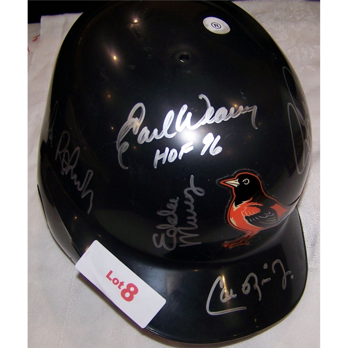 RAWLING BASEBALL HELMET 9 ORIOLES GREATS AUTOGRAPHS. CAL RIPKIN JR., EDDIE MURRY AND MORE. INCLUDES COA FROM PRIMETIME COLLECTIONS #K370045.