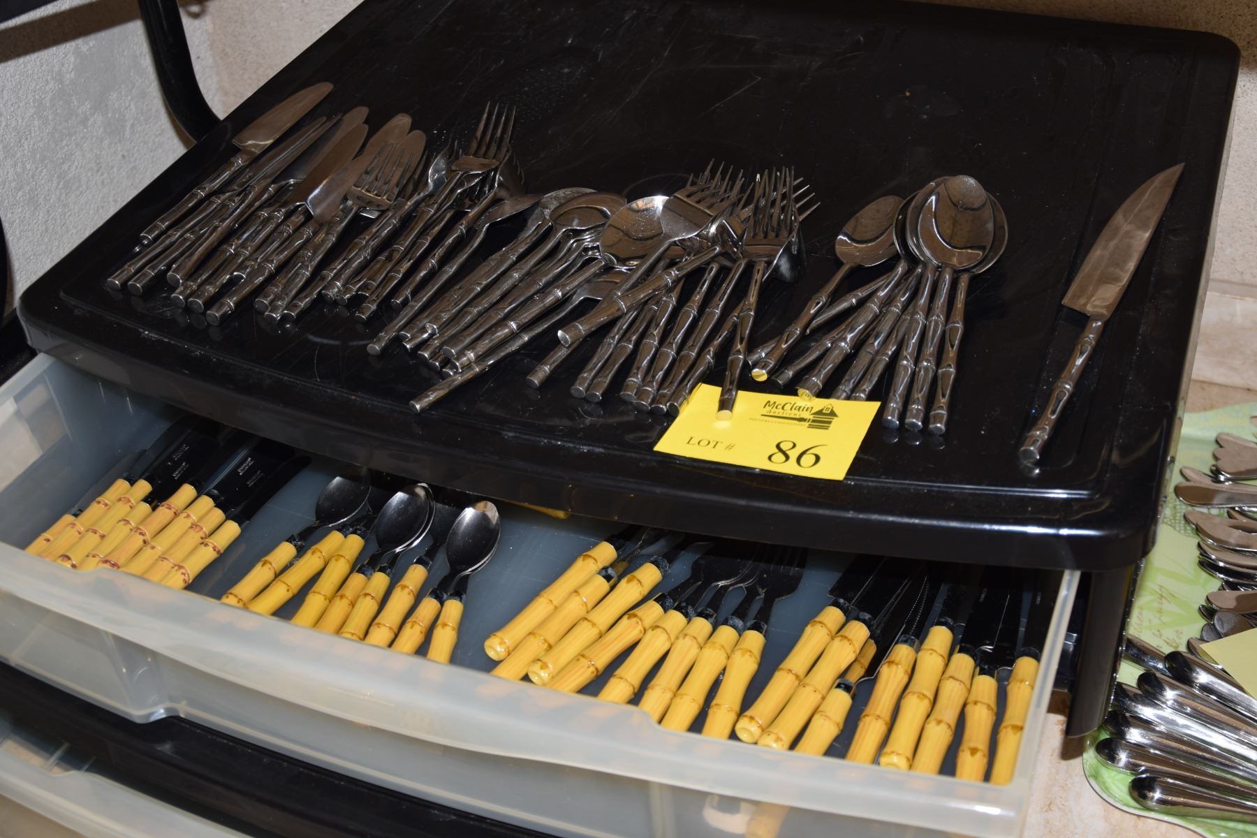 BAMBOO STYLE FLATWARE, 2 STYLES (87 TOTAL PCS)