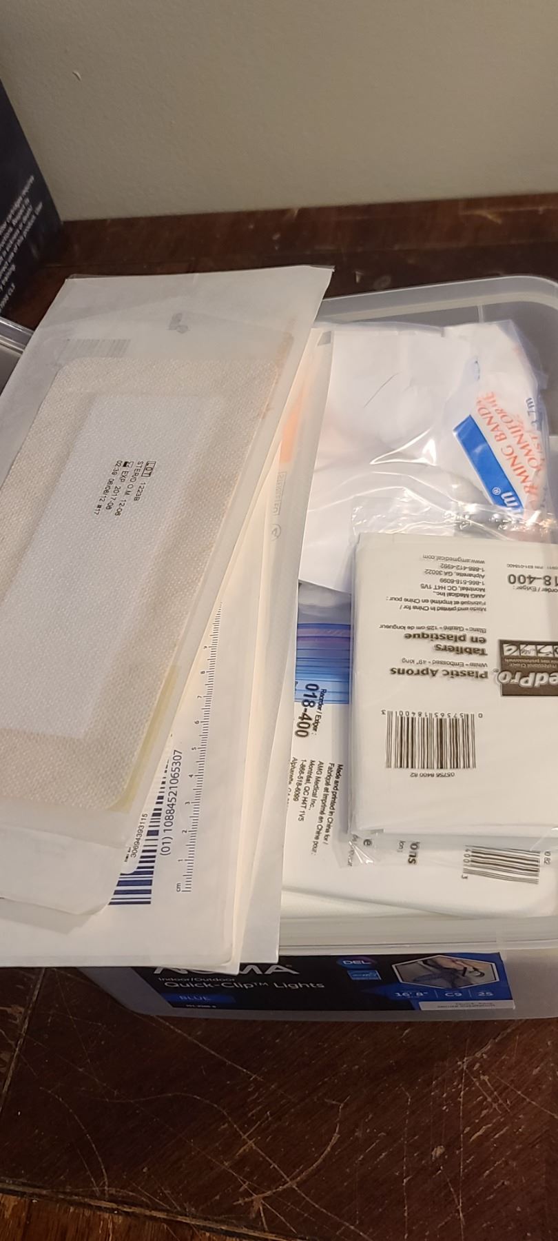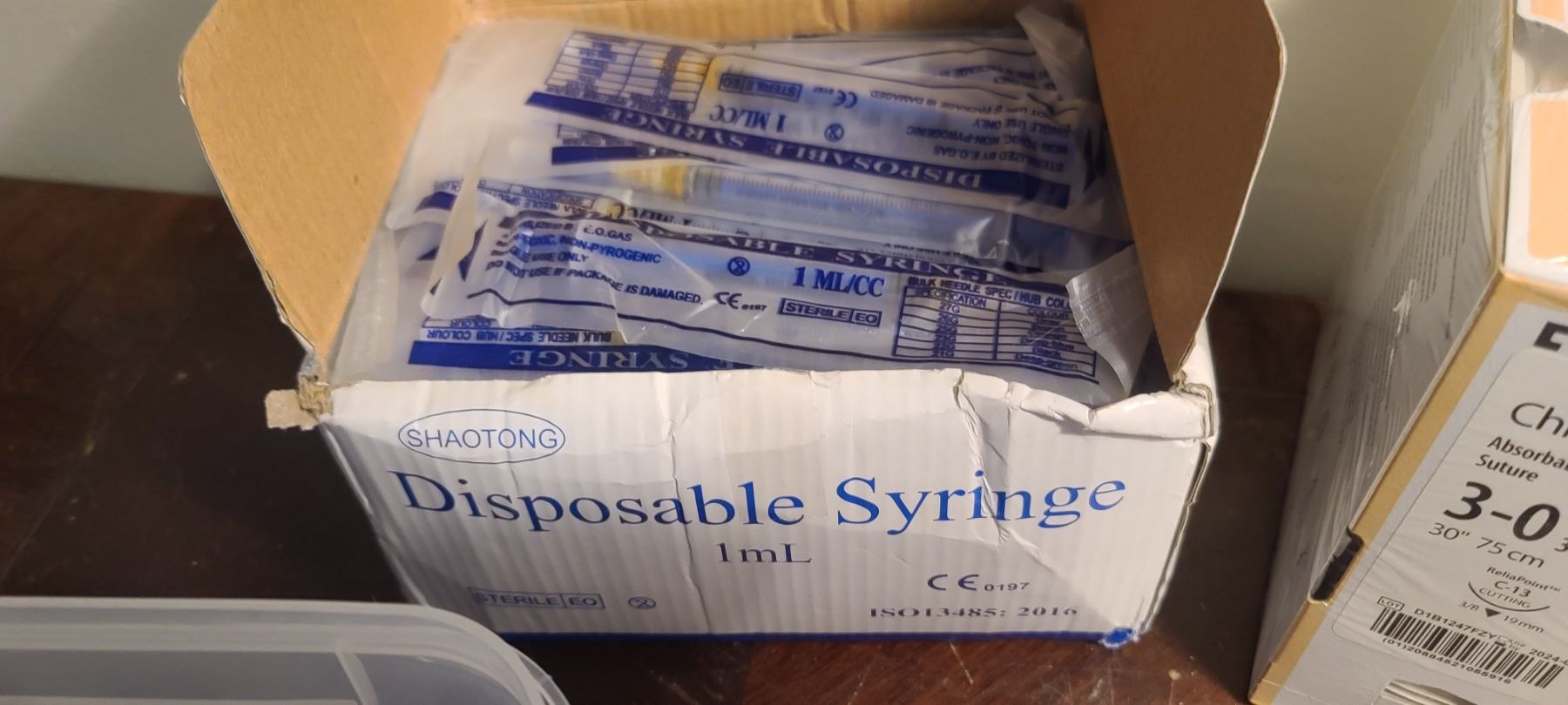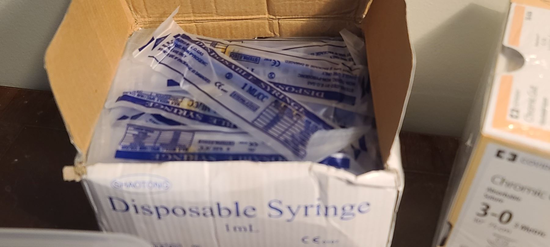 BANDAGES, SUTURES, DISPOSABLE SYRINGES, RUBBER GLOVES