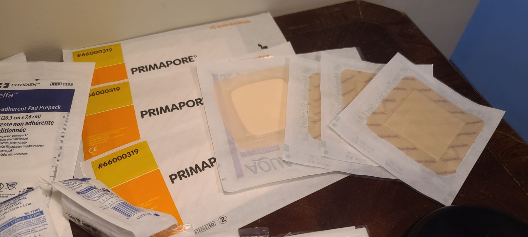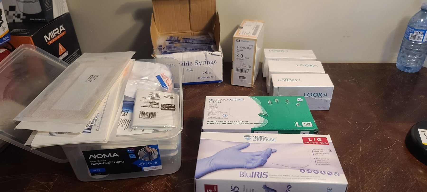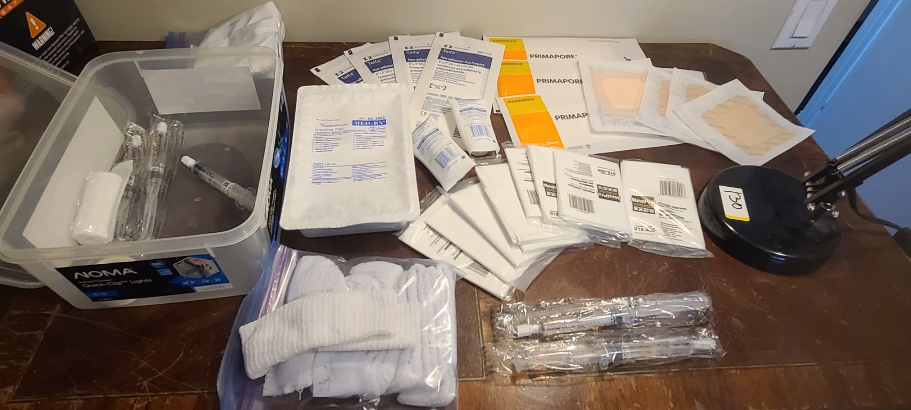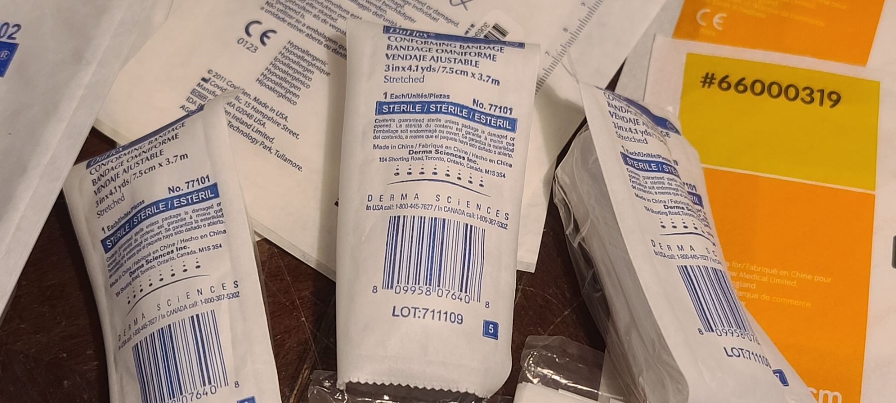 BANDAGES, SUTURES, DISPOSABLE SYRINGES, RUBBER GLOVES