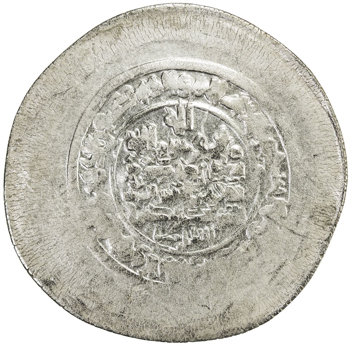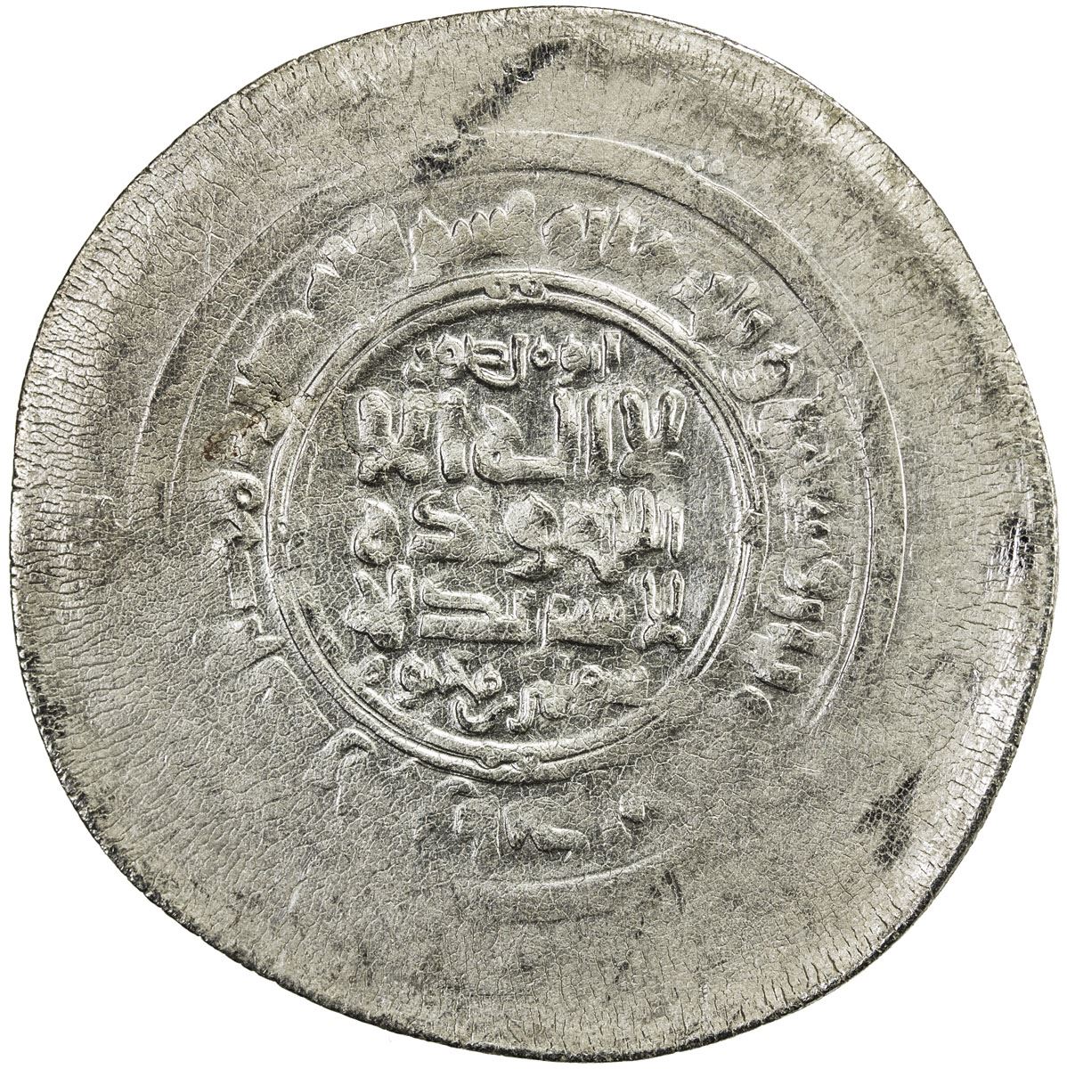 BANIJURID: Sahlan b. Maktum, 974-988, AR multiple dirham, Andaraba, AH378, A-A1440, 10.21g, obverse as SNAT-204 (same die), reverse as SNAT-206 of Sebuktegin (different die), Qur'an Verse 9:34 (warning for those who hoard gold & silver), minor weakness towards the rim, EF, RRR. The same reverse die is known on Zeno-39926. This is the only example I've seen that includes the last three words of the Qur'an Verse 9:34, "announce unto them a most grievous penalty." It remains undetermined if this type indicates that Sahlan switched his obedience from the Samanids to the Ghaznavids in or shortly after AH378, or whether this is just an unintended muling of two dies of different origins.