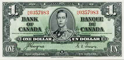 BANK OF CANADA. $1.00. 1937 Issue. BC-21d. Coyne-Towers. No. H/N0357983. BCS graded Almost UNC-50; No. U/N2763860. BCS graded Almost UNC-58; $2.00. 1937. BC-22c. Coyne-Towers. No. E/R4858. BCS graded Almost UNC-50. All three (3) notes are designated as ‘Original.