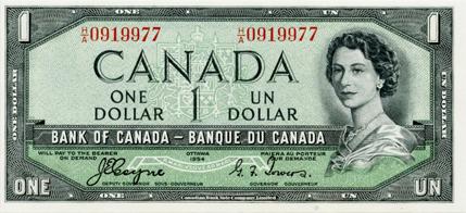 BANK OF CANADA. $1.00. 1954 Issue. BC-29a. ‘Devil’s Face’. Coyne-Towers. No. I/A0919972 through I/A0919977. Lot of six (6) consecutive notes. All PMG graded. Choice Unc-64. EPQ.