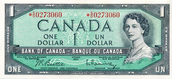BANK OF CANADA. $1.00. 1954 Issue. BC-37bA. Modified. No. *S/O0101664. & *S/O0273060. Both CCCS graded Choice Unc-63.