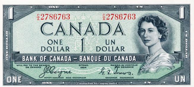BANK OF CANADA. $1.00. 1954 Issue. 'Devil's Face'. BC-29a. No. A/A2616963. PCGS graded CH AU-58. PPQ; No. B/A1049785. PCGS graded CH AU-58. PPQ. Lot of two (2) notes.