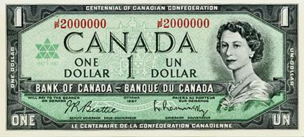 BANK OF CANADA. $1.00. 1967 Issue. BC-45b-i. No. J/P2000000. CU.