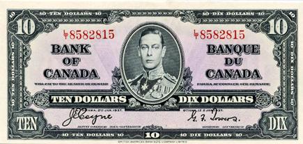 BANK OF CANADA. $10.00. 1937 Issue. BC-24c. Coyne-Towers. No. L/T8582815. BCS graded Unc-60. Designated as ‘Original’. $10.00. 1937 Issue. BC-24c. Coyne-Towers. No. L/T8582815. BCS graded Almost Unc-58. Designated as ‘Original’. Lot of two (2) notes.