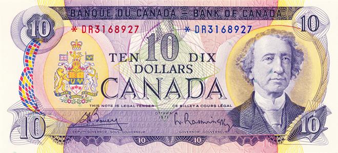 BANK OF CANADA. $10.00. 1971 Issue. BC-49bA. No. *DR3168927. PCGS graded Unc-63. PPQ.