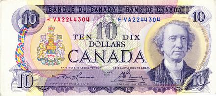 BANK OF CANADA. $10.00. 1971 Issue. BC-49cA. No. *VA2244304. PCGS graded Unc-61.