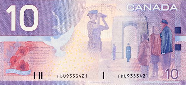 BANK OF CANADA. $10.00. 2000 Issue. BC-63aA. Insert note. Knight-Thiessen. No. FDU9353421. CCCS graded Unc-65.