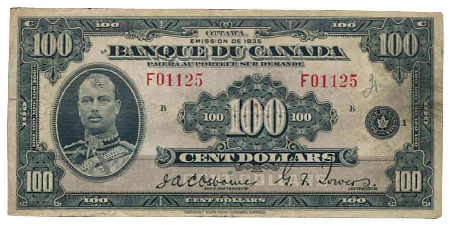 BANK OF CANADA. $100.00 1935 Issue. French Text. BC-16. No. F01125/B. PMG graded Very Fine-20.
