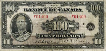 BANK OF CANADA. $100.00. 1935 Issue. French Text. Osborne. BC-16. No. F01409. PMG graded FINE-12.