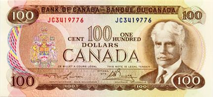 BANK OF CANADA. $100.00. 1975 Issue. BC-52a. Lawson-Bouey. No. JC3419775 & JC3419776. Both CCCS graded Choice UNC-63.
