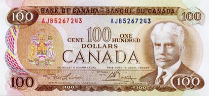 BANK OF CANADA. $100.00. 1975 Issue. BC-52a-i. Lawson-Bouey. No. AJB5267243 & AJB5267245. CCCS graded Choice UNC-63.