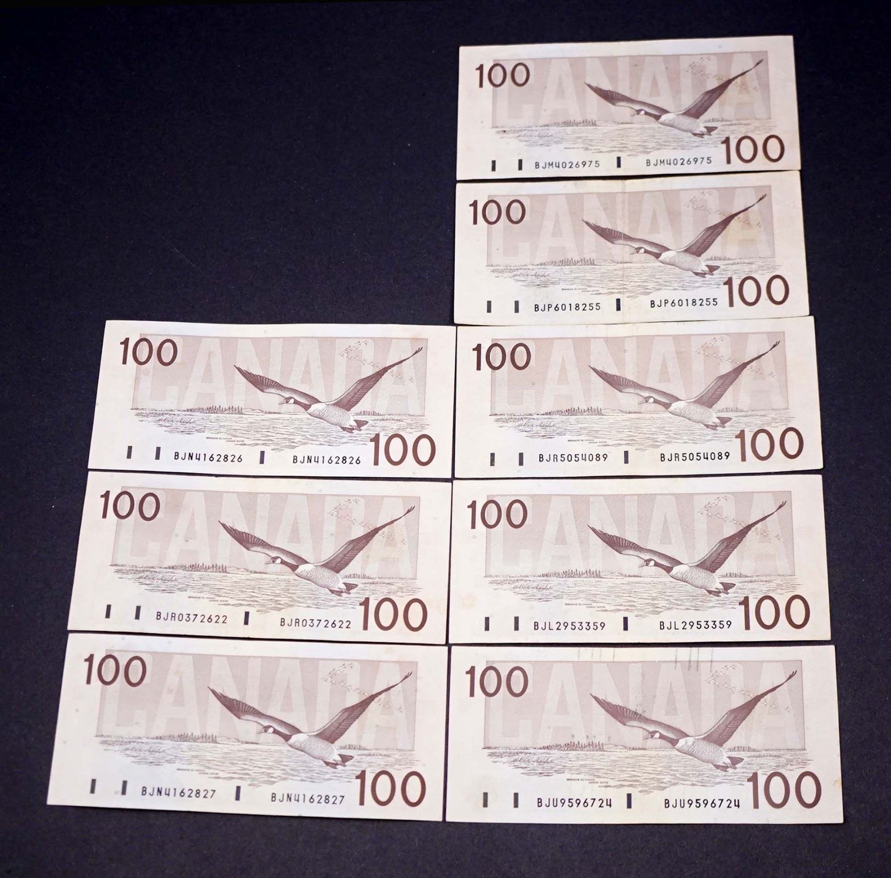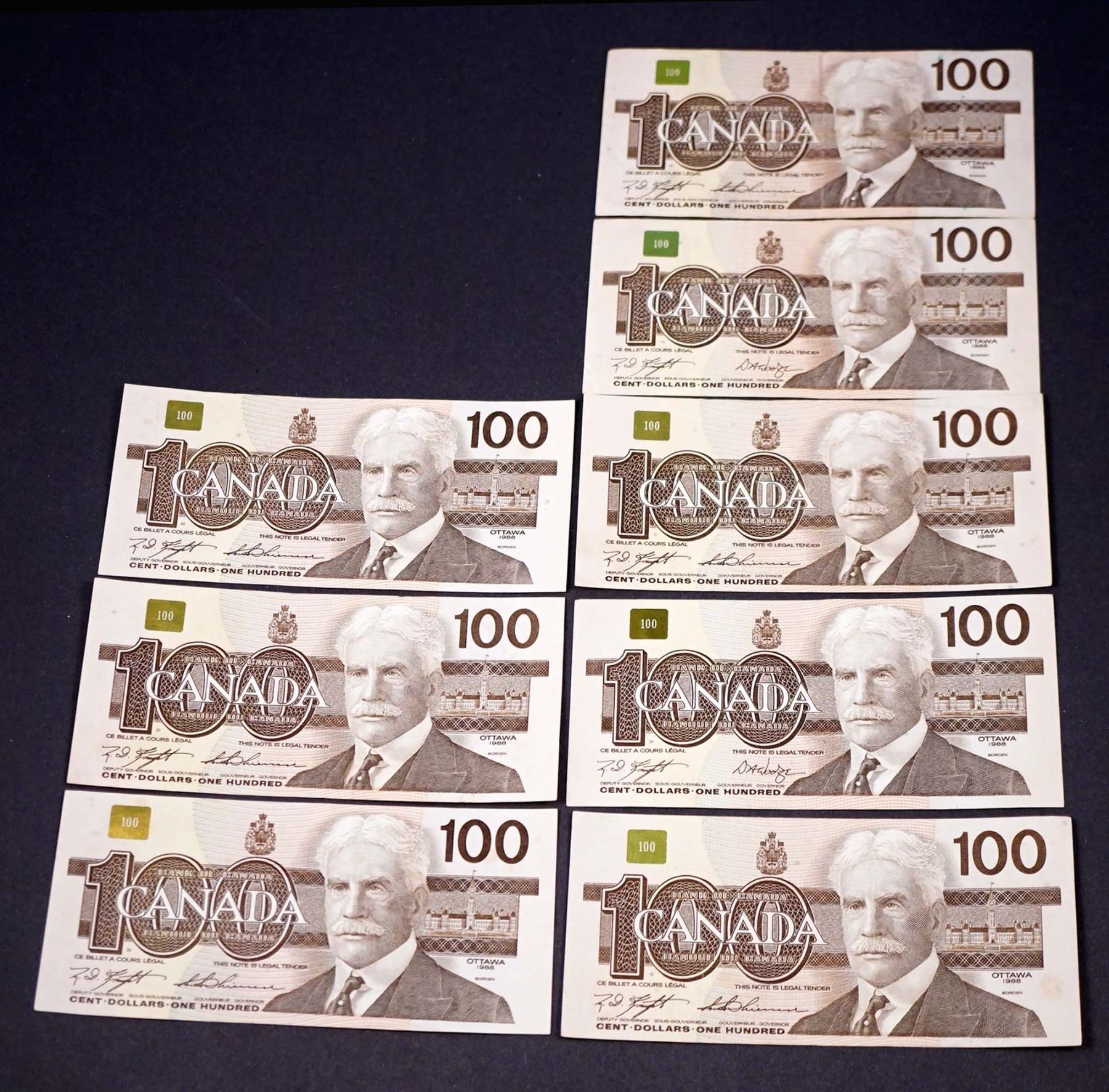 BANK OF CANADA $100.00 1988. A Lot of 8 BC-60a & b Banknotes VF-UNC