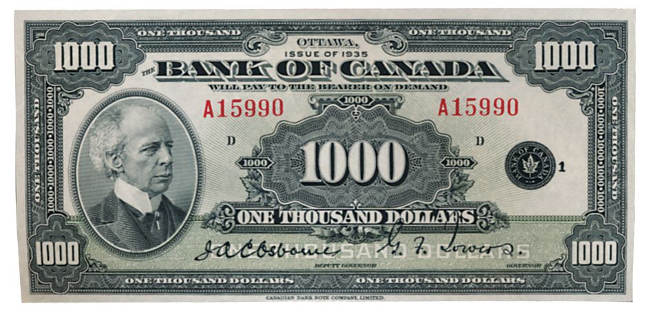 BANK OF CANADA. $1000.00. 1935 Issue. English Text. BC-19. No. A15990/B.