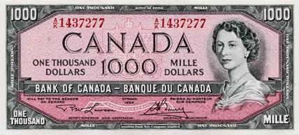BANK OF CANADA. $1000.00. BC-46d. No. A/K1437277. Ch Unc.