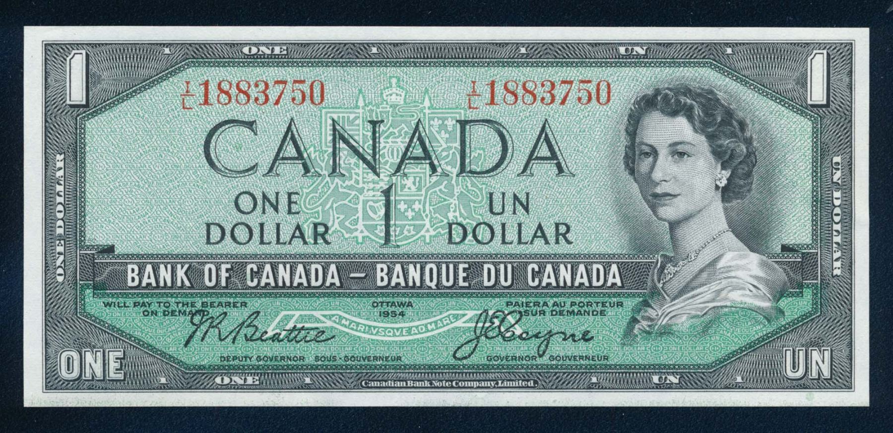 BANK OF CANADA 1954 $1.00, BC-37a, Beattie-Coyne, Modified CBN. Graded: GEM UNC