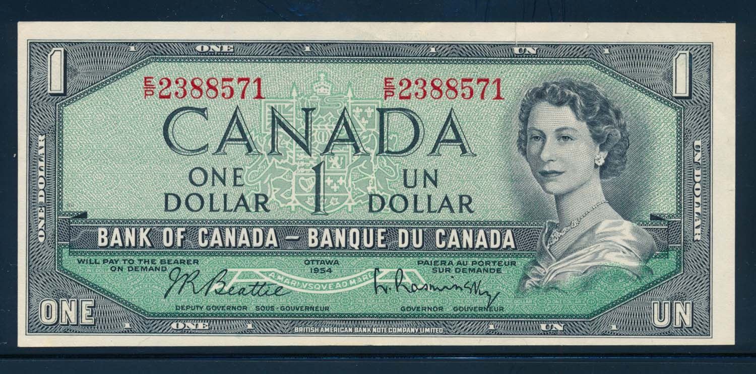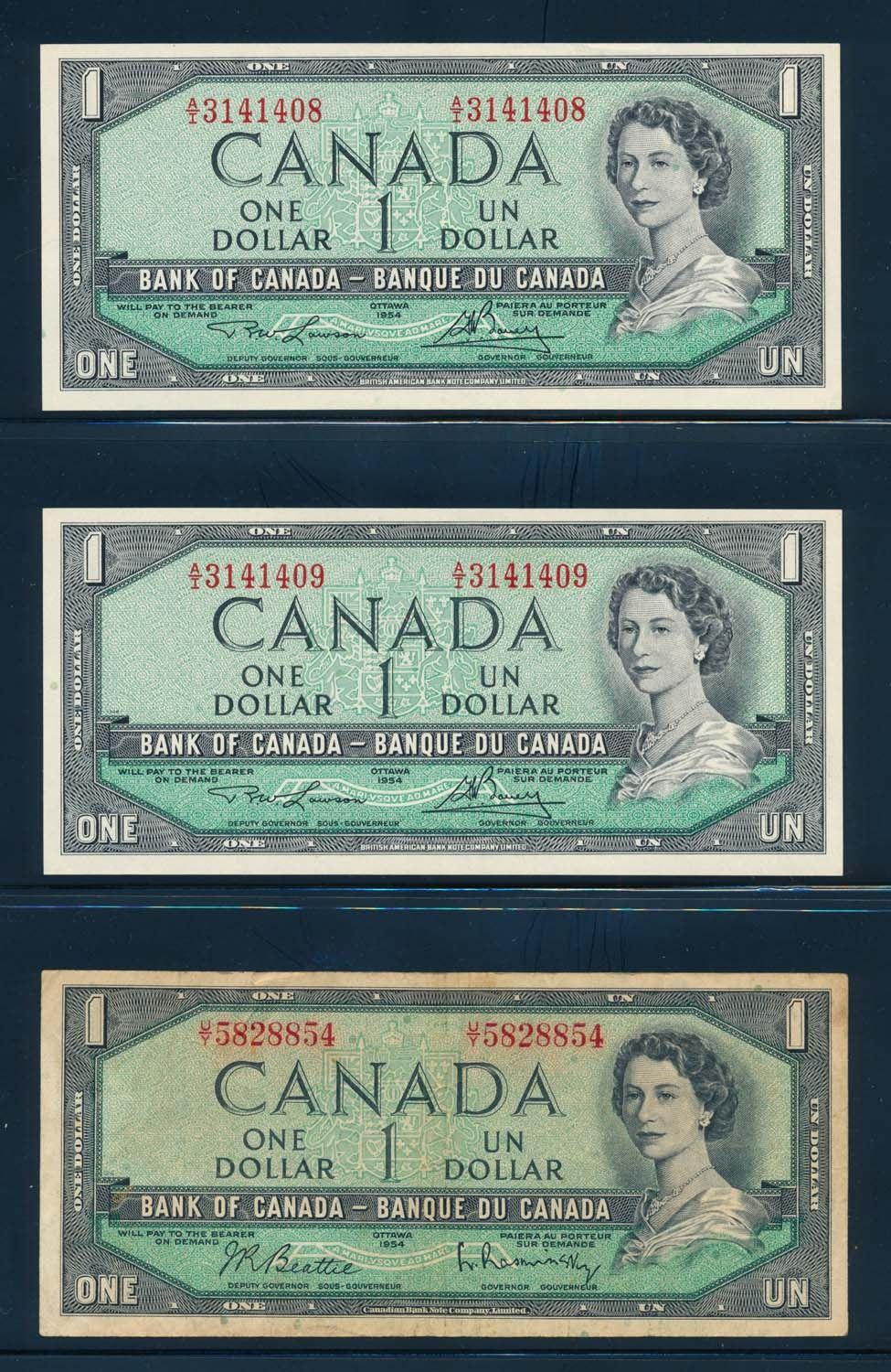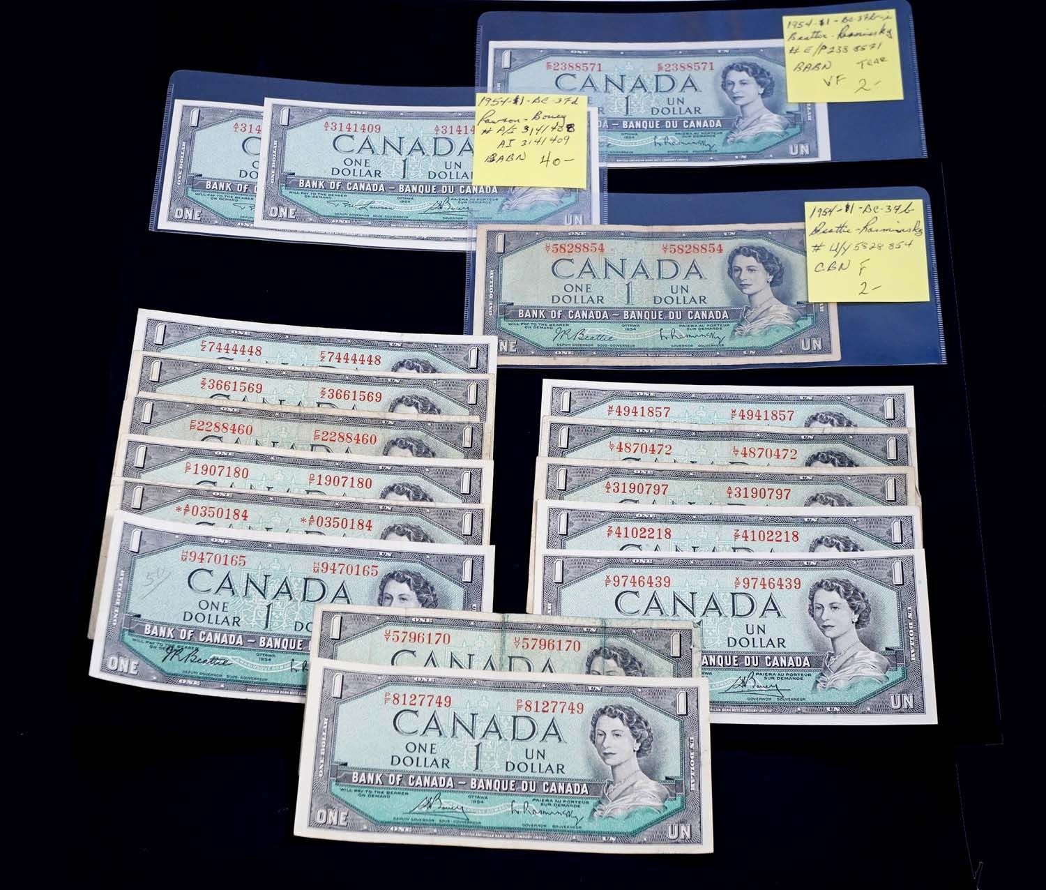 BANK OF CANADA 1954 $1.00. Lot of 17 Notes with Mixed Signatures. BC-37. Good-UNC
