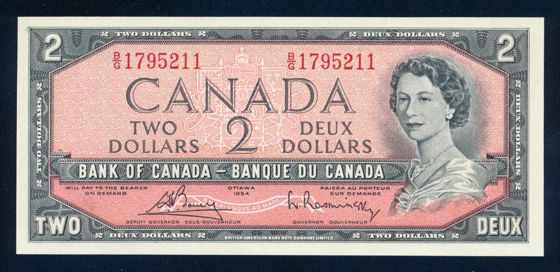 BANK OF CANADA 1954 $2.00, BC-38c, Bouey-Razminsky, Modified BABN. Graded: CH UNC