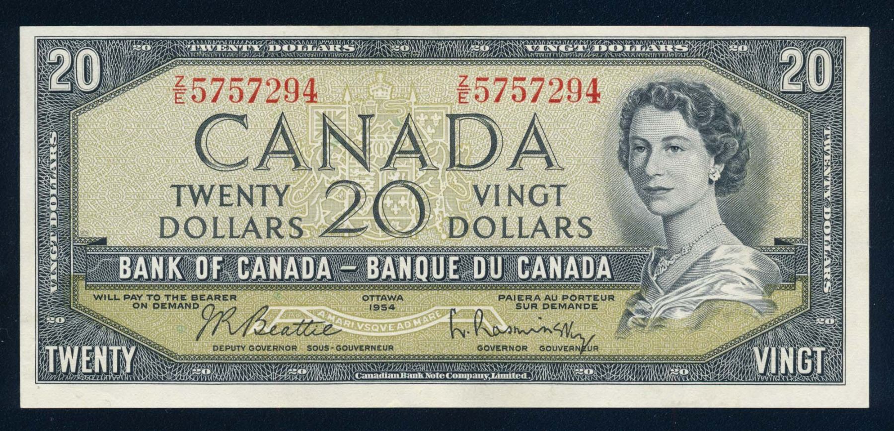 BANK OF CANADA 1954 $20.00, BC-41b, Beattie-Razminsky, Modified BABN. Graded: CH UNC