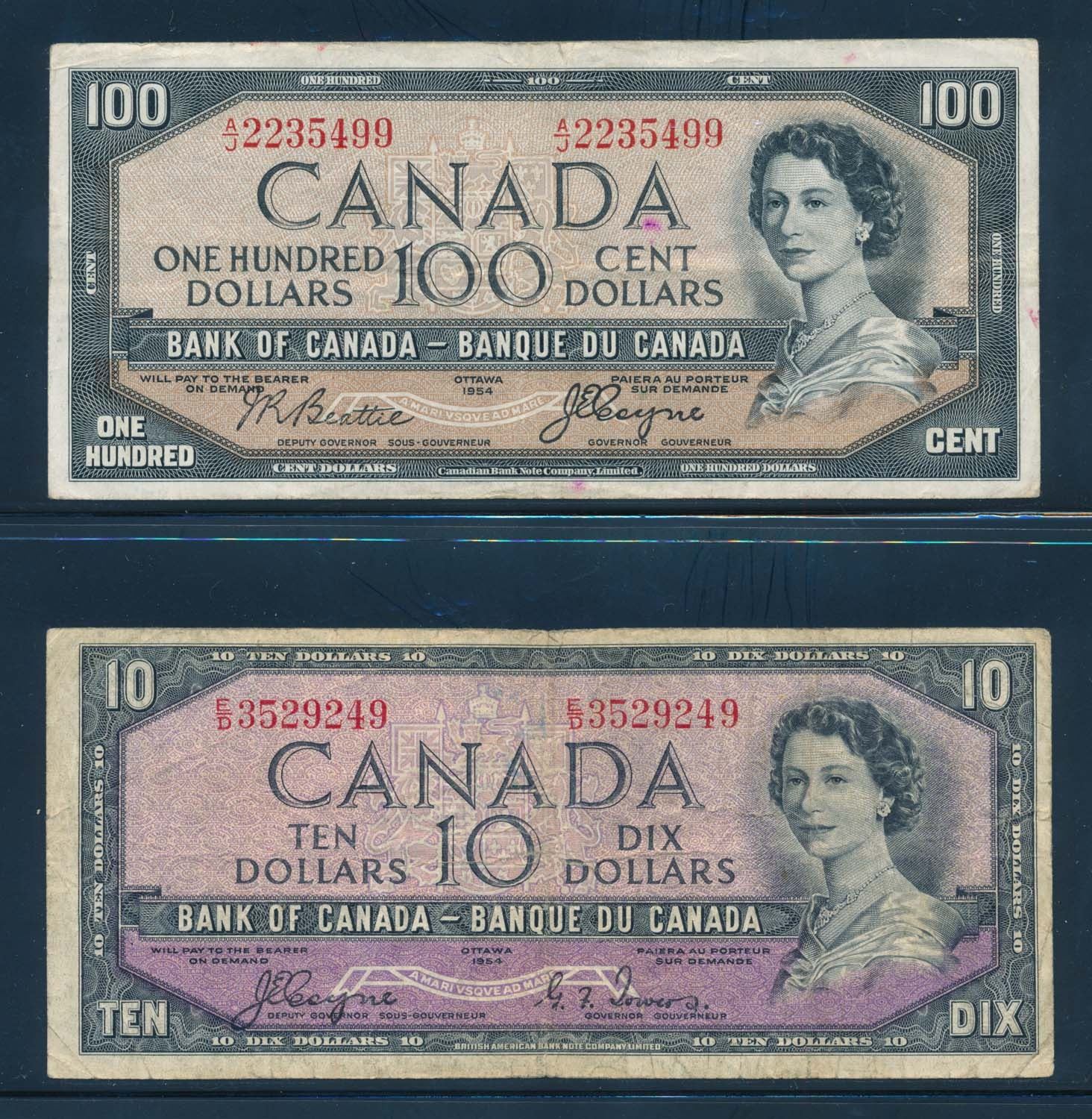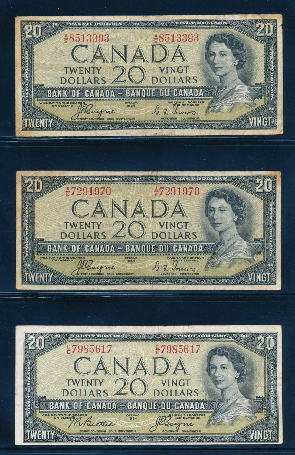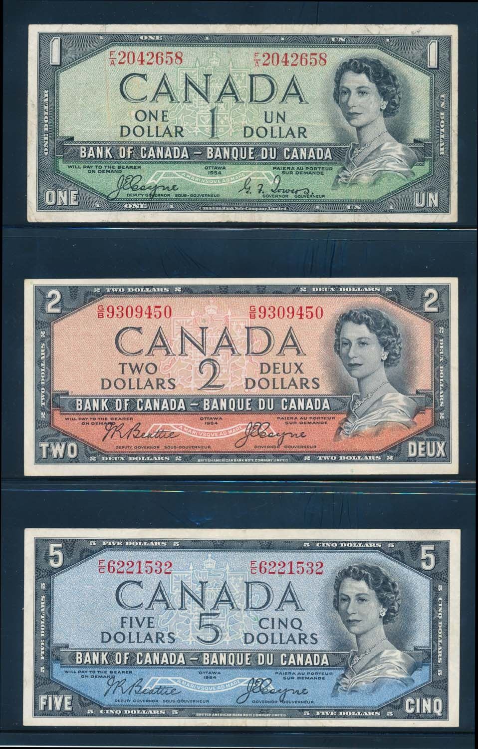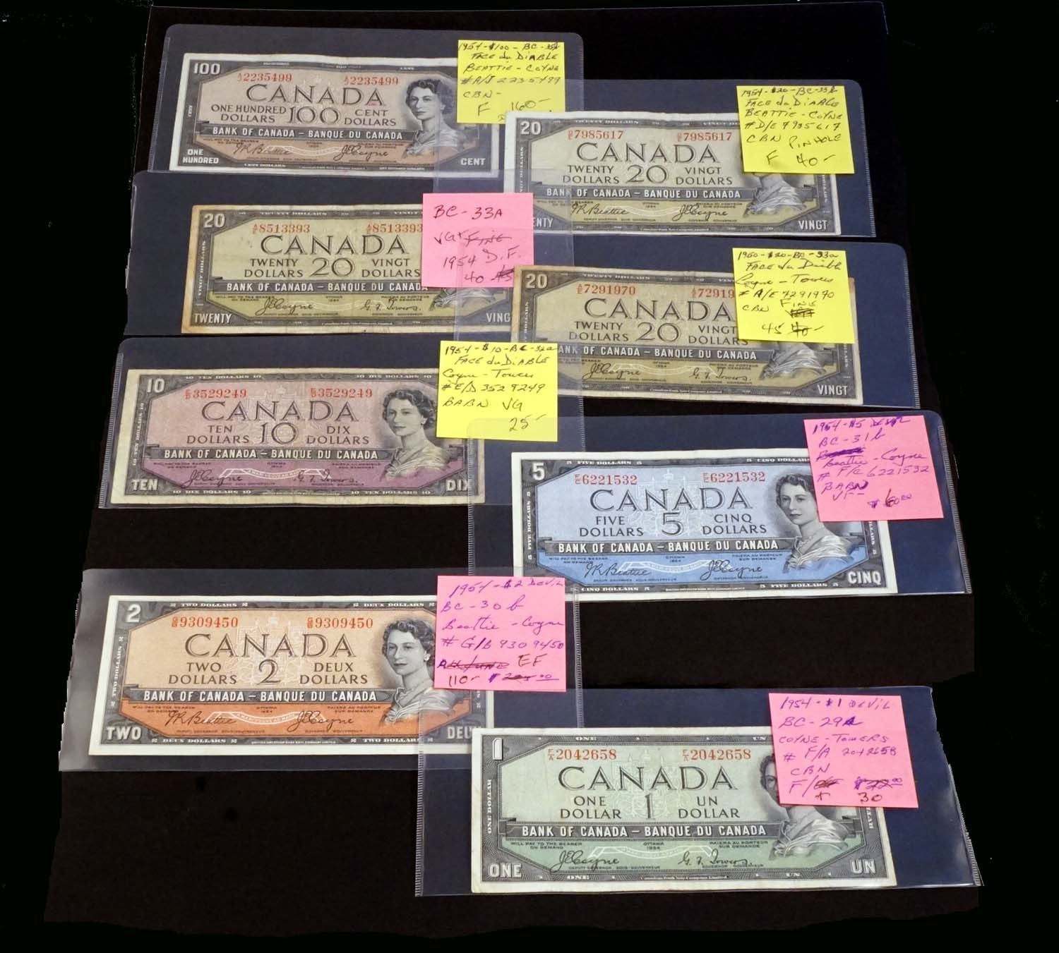 BANK OF CANADA 1954 Devil's Face. A Starter Set of 8 Banknotes in VG-VF