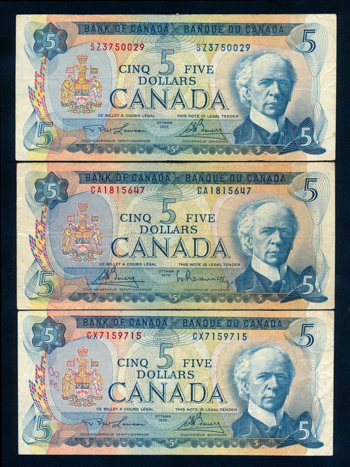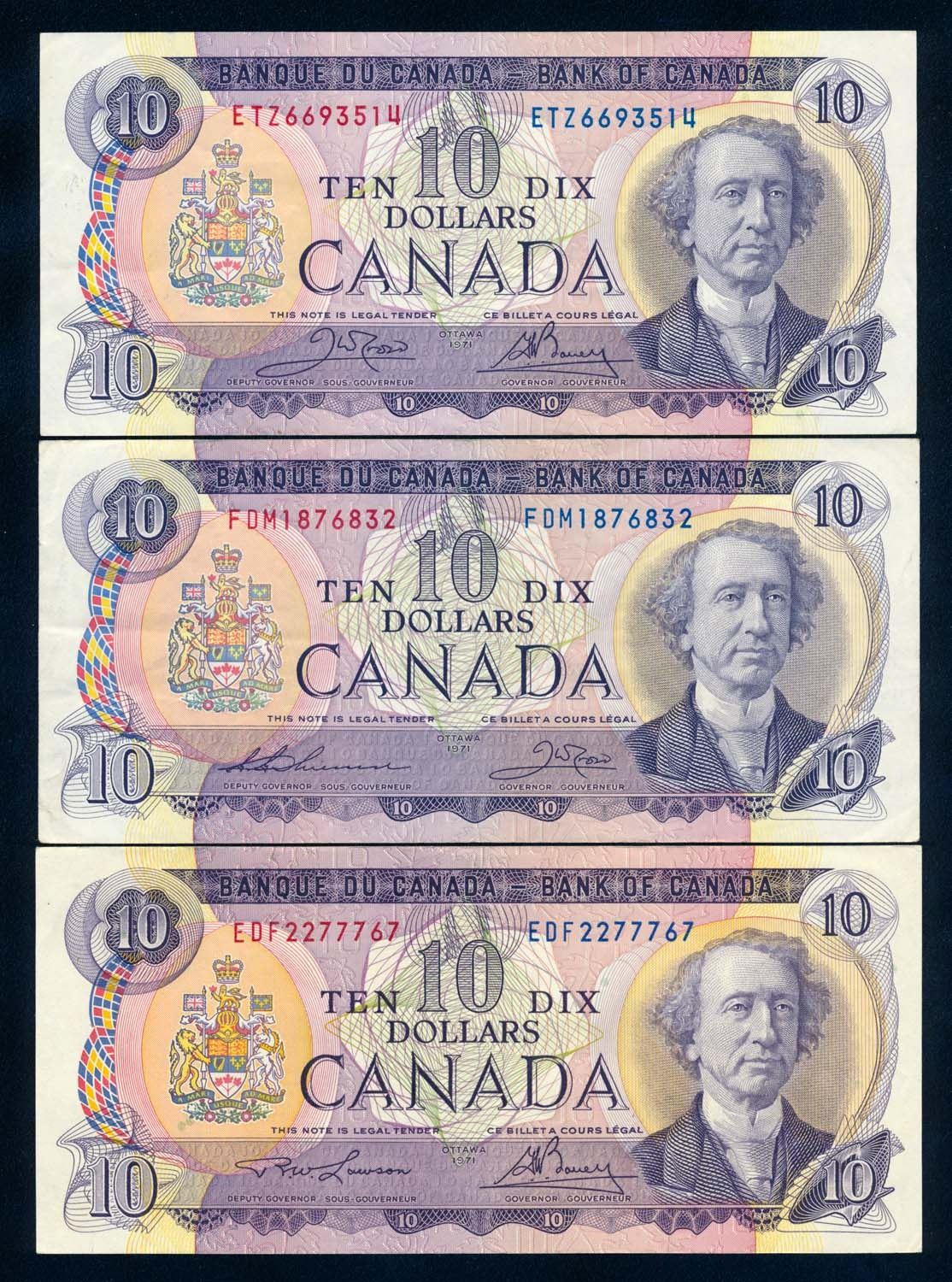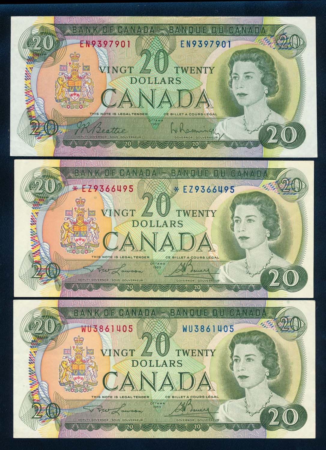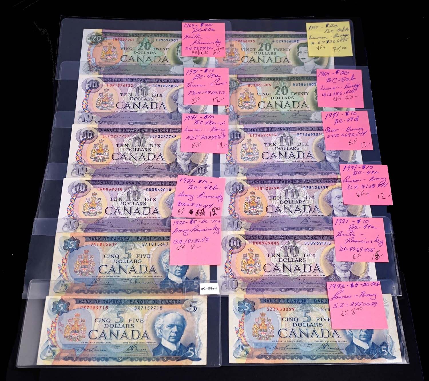BANK OF CANADA 1969-1975 Issuses. A Lot of 12 Banknotes $5.00-$20.00 in VF-AU/UNC