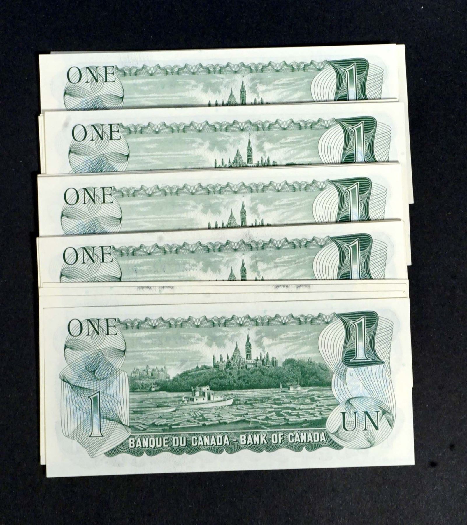 BANK OF CANADA 1973 $1.00, Lot of 48 Banknotes, BC-46b. GUnc