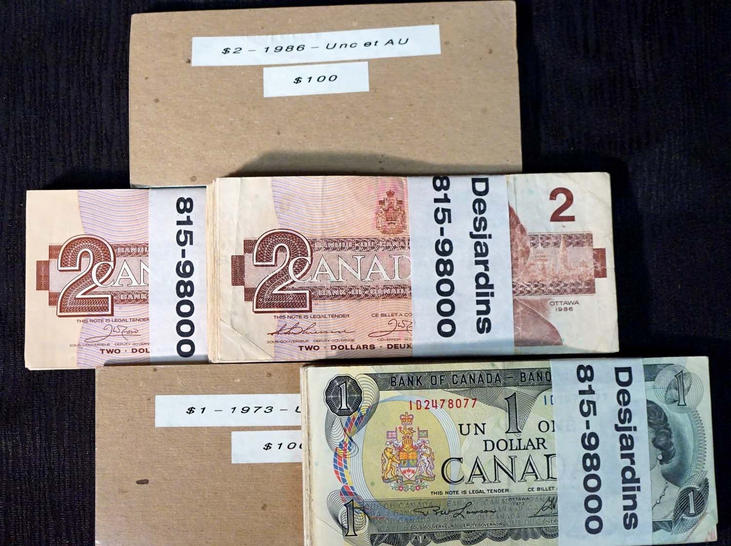 BANK OF CANADA 1973-1986 A Lot of 5 Bundles of Circulated Bank Notes