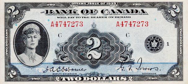 BANK OF CANADA. $2.00. 1935 Issue. English Text. BC-3. No. A4747273/C. BCS graded Very Fine-20.