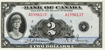 BANK OF CANADA. $2.00. 1935 Issue. English Text. Osborne. BC-3. No. A1886137/A. PCGS graded AU-55.