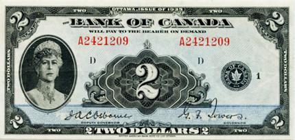 BANK OF CANADA. $2.00. 1935 Issue. English Text. Osborne. BC-3. No. A2421209/D. PMG graded Very Fine-35.