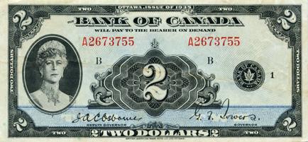 BANK OF CANADA. $2.00. 1935 Issue. English Text. Osborne. BC-3. No. A2673755/B. BCS graded Very Fine-25.