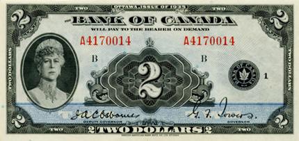 BANK OF CANADA. $2.00. 1935 Issue. English Text. Osborne. BC-3. No. A4170014/B. Bright Extra Fine.