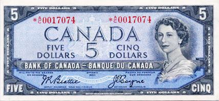 BANK OF CANADA. $2.00. 1954 Issue. BC-39aA. Modified. Beattie-Coyne. No. *A/C0017074. BCS graded Extra Fine-40.