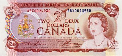 BANK OF CANADA. $2.00. 1974 Issue. BC-47aA-i. No. ABX0024930. CU.