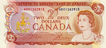 BANK OF CANADA. $2.00. 1974 Issue. BC-47bA. No. ABX1262915. CU.