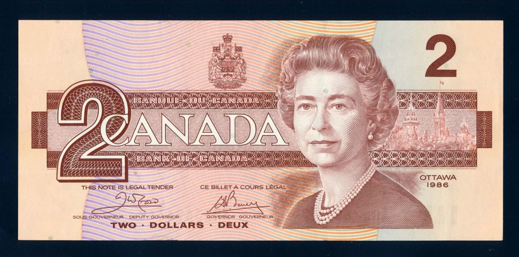BANK OF CANADA $2,00 1986 BC-55a Crow-Bouey Repeater Banknote UNC