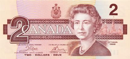 BANK OF CANADA. $2.00. 1986. BC-55a. No. AUH3615413. PCGS graded Gem Unc-68. PPQ.