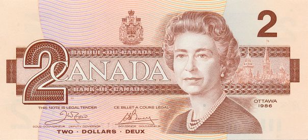 BANK OF CANADA. $2.00. 1986 Issue. BC-55a. Crow- Bouey. No. AUH4174003. CCCS graded Gem Unc-66.