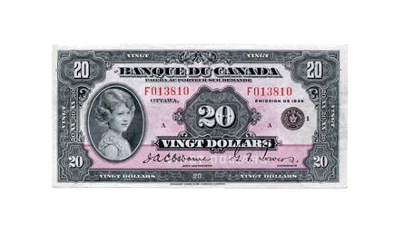 BANK OF CANADA. $20.00. 1935 Issue. BC-10. French Text. No. F013810/A. Choice Very Fine.