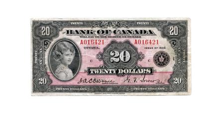 BANK OF CANADA. $20.00. 1935 Issue. BC-9a. English Text. Large Seal. No. A016421/C. A good Fine.