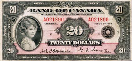 BANK OF CANADA. $20.00. 1935 Issue. English Text. Large Seal. Osborne. BC-9a. No. A021890/C. PMG graded FINE-15.